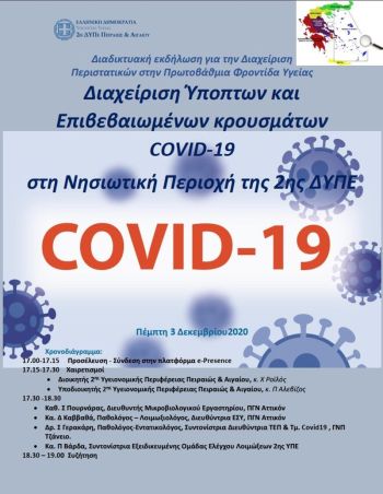 04-12-2020 Διαδικτυακή εκδήλωση για την Διαχείριση Ύποπτων και Επιβεβαιωμένων κρουσμάτων COVID-19 στην Νησιωτική Περιοχή της 2ης ΔΥΠΕ