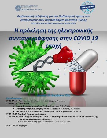 23.11.2020 Εκδήλωση με θέμα Συνταγογράφηση αντιβιοτικών: Η πρόκληση της ηλεκτρονικής συνταγογράφησης στην COVID 19 εποχή