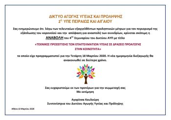 ΕΓΓΡΑΦΗ ΜΕΛΩΝ – ΔΙΚΤΥΟ ΑΓΩΓΗΣ ΥΓΕΙΑΣ ΚΑΙ ΠΡΟΛΗΨΗΣ Τη Δευτέρα 30 Μαΐου 2022, θα πραγματοποιηθούν οι εκλογές του Δικτύου Αγωγής Υγείας και Πρόληψης, με ψηφιακή κάλπη.Σύμφωνα με το Νόμο υπ’ αριθ. 4486 /2017, άρθρο 13, παρ. 2 « Τα μέλη του Δικτύου μπορούν να προέρχονται από όλους τους κλάδους που υπηρετούν στις δομές Π.Φ.Υ. της […]